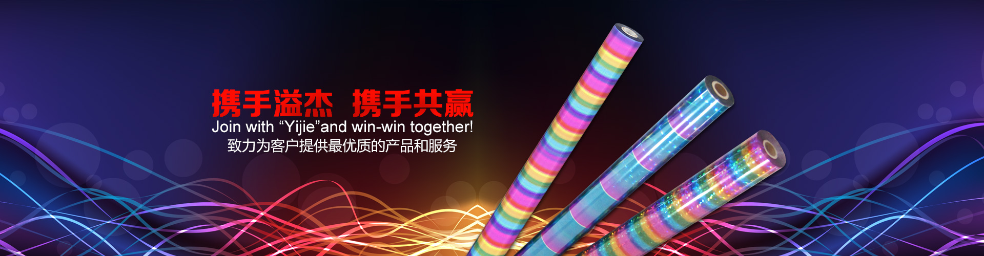 廣州市溢杰包裝材料有限公司是一家集生產(chǎn)、研發(fā)、銷(xiāo)售電化鋁燙印箔、PET、BOPP、PVC、鐳射膜、防亂花膜、觸感膜等特種膜為一體的高新科技企業(yè),同時(shí)是海關(guān)總署批注的有進(jìn)出口經(jīng)營(yíng)權(quán)的公司,在香港、珠三角等地設(shè)有分公司。